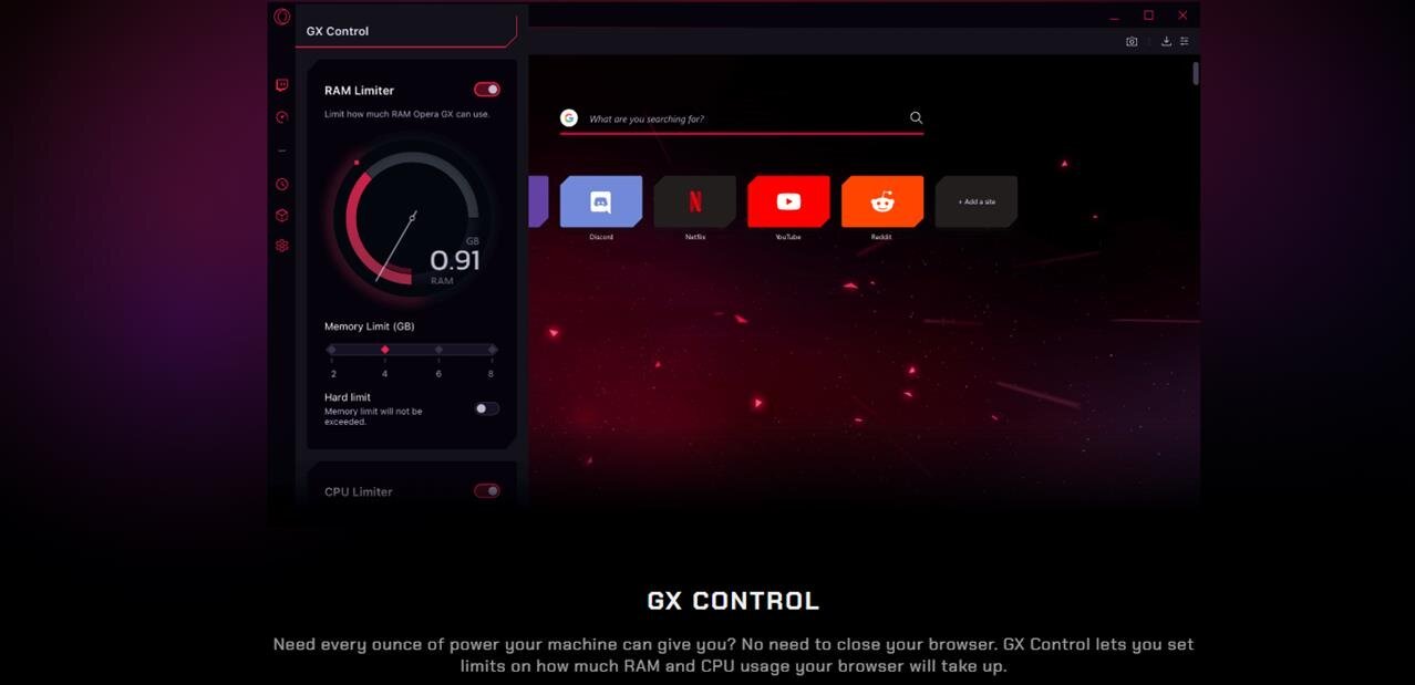 • GX Control : Permet de limiter l’utilisation de la RAM et du CPU pour éviter que le navigateur n’interfère avec vos jeux.